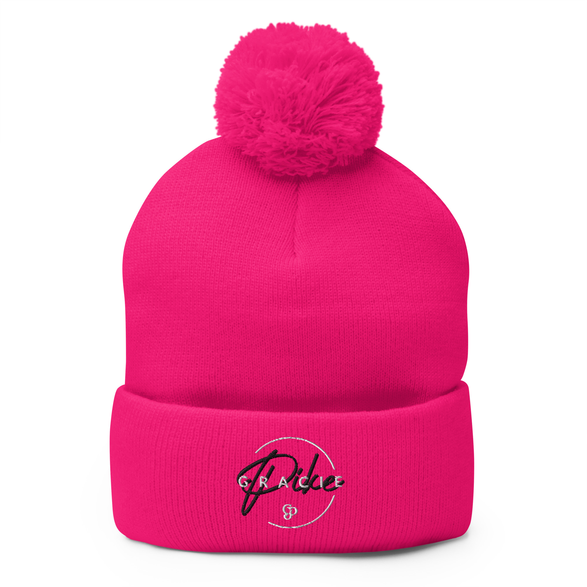 Expand your wardrobe with a classic embroidered beanie. Finished with a pom-pom on top, it offers tons of warmth and comfort, and is destined to find its way into all your favorite cold-weather looks.