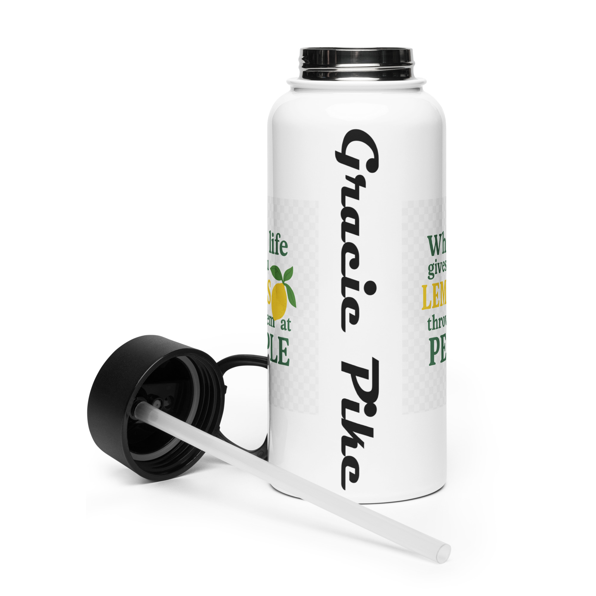 Stay hydrated all day with this 32 oz (950 ml) water bottle. It’s ideal for workouts or busy days, with a wide-mouth foldable straw for spill-free sipping and a rotating handle for easy carrying.